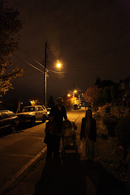 No mall trick-or-treating for us! We always set out around the hood. It was a perfect night. Dry, not too cold, no wind and no rain until much later in the night.....